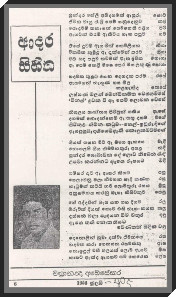 “Suwanda” Poetry Magazine (July 1955) - "Aadara Sihina"