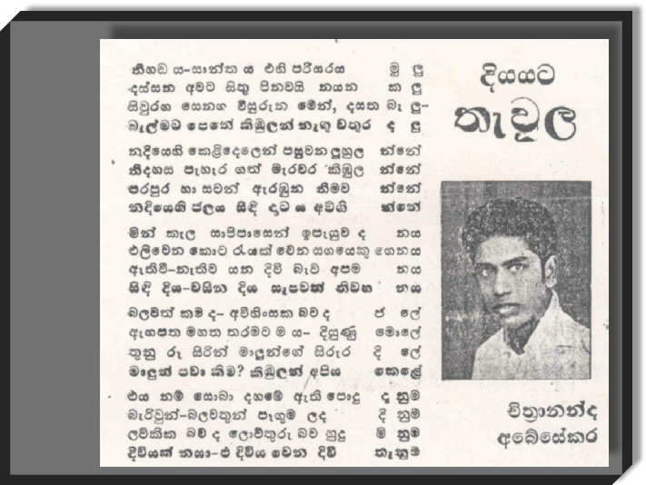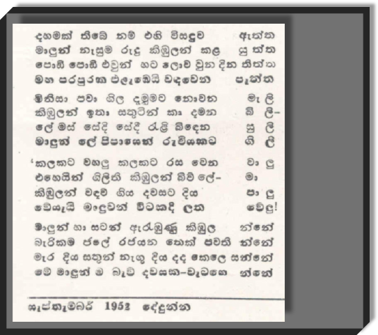 “Diyayata Thevula” Dedunna Poetry Magazine (September 1952) - "Ahalepola"