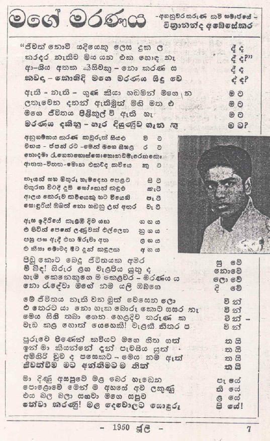 “Meewadaya” Poetry Magazine (July 1950) - "Mage Maranaya"
