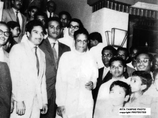 Boniface Fernando, Robin Tampoe, Hon. Min. Maithripala Senanayake, Chitrananda Abeysekera, Camaraman Lini De Costa and Eddie Jayamanne.