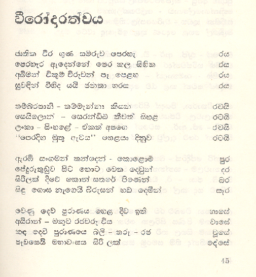 "Swarnamali" - Poem no. 7: "Weerodarathwaya" (The Heroism)
