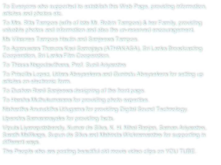 To Everyone who supported to establish this Web Page, providing information, articles and photos etc.