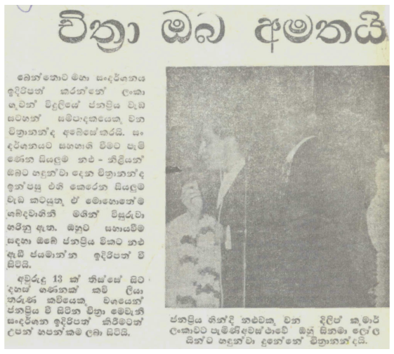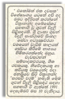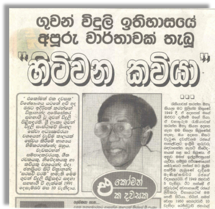 This news-paper article was published in "Lakbima" newspaper on the 10th of November