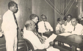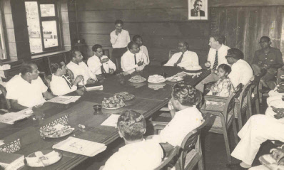 Inauguration meeting of the Rural Service of Radio Ceylon H. M. Gunasekera, George Leslie Ranasinghe, W.R.B. Rajakaruna,Thevis Guruge, Chitrananda Abeysekera, Nevil Jayaweera, Stewart Weval and Prof. Thilak Ratnakara.