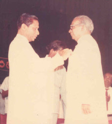 Poet Pandith Wimal Abhayasundara receives “Kivipathi” Award from Hon. R. Premadasa
